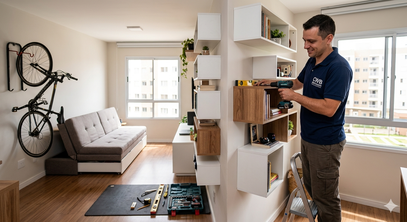 Muitas vezes, a solução para a falta de espaço não está em comprar móveis novos, mas sim em garantir que a montagem e os ajustes dos atuais estejam impecáveis.