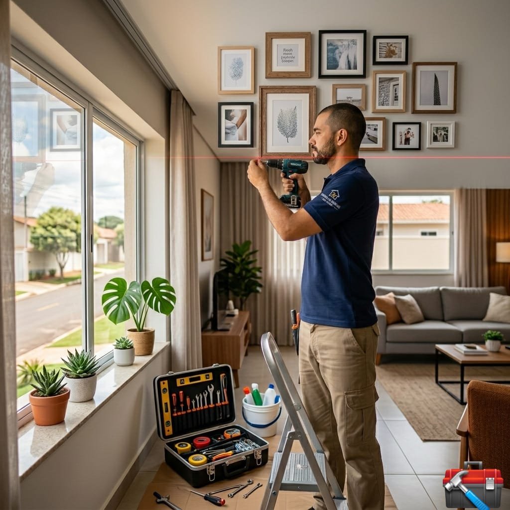 Procurando por um especialista em instalação de quadros decorativos em Rio Claro SP? Transformar uma parede vazia em uma galeria pessoal exige mais do que apenas pregos e um martelo; requer precisão matemática, senso estético e o uso das ferramentas corretas para garantir que suas obras de arte, fotografias e espelhos fiquem perfeitamente alinhados e seguros. Uma fixação mal executada pode resultar em quadros tortos, danos permanentes na pintura da sua parede ou, pior, a queda e quebra de peças valiosas e sentimentais. Em Rio Claro, oferecemos um serviço profissional de pendurador de quadros que resolve esses problemas com rapidez, limpeza e exatidão técnica.