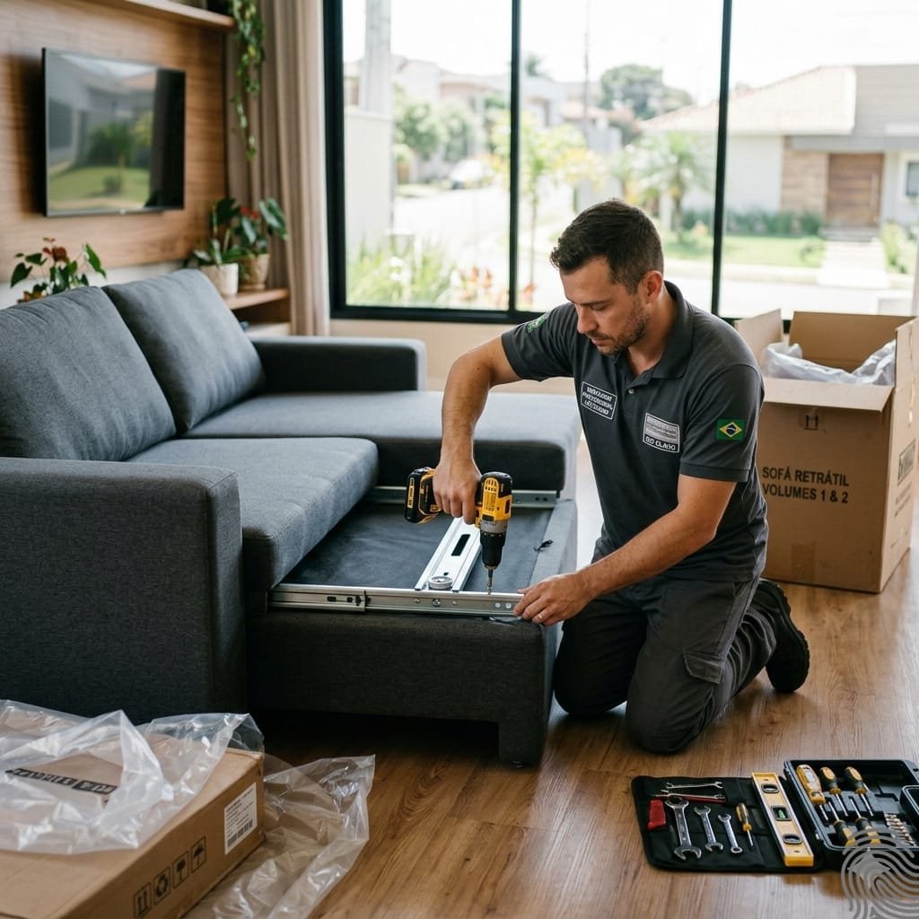 Diferente de um armário fixo, o sofá retrátil possui partes móveis, trilhos, pistões e, em alguns casos, motores elétricos. Uma montagem mal feita pode causar o travamento do mecanismo, rasgos no tecido por atrito incorreto ou até a quebra da estrutura de madeira por falta de alinhamento.